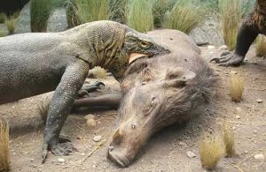 1 место – КОМОДСКИЙ ВАРАН – 150 кг веса и 3 метра длиной. В слюне этого ящера 4 вида активных бактерий, которые обессилит Вас за 2-3 дня, а он все это время будет не спеша идти за вами заставляя Вас умирать от жара и поглощающего страха при виде такой ящерки.